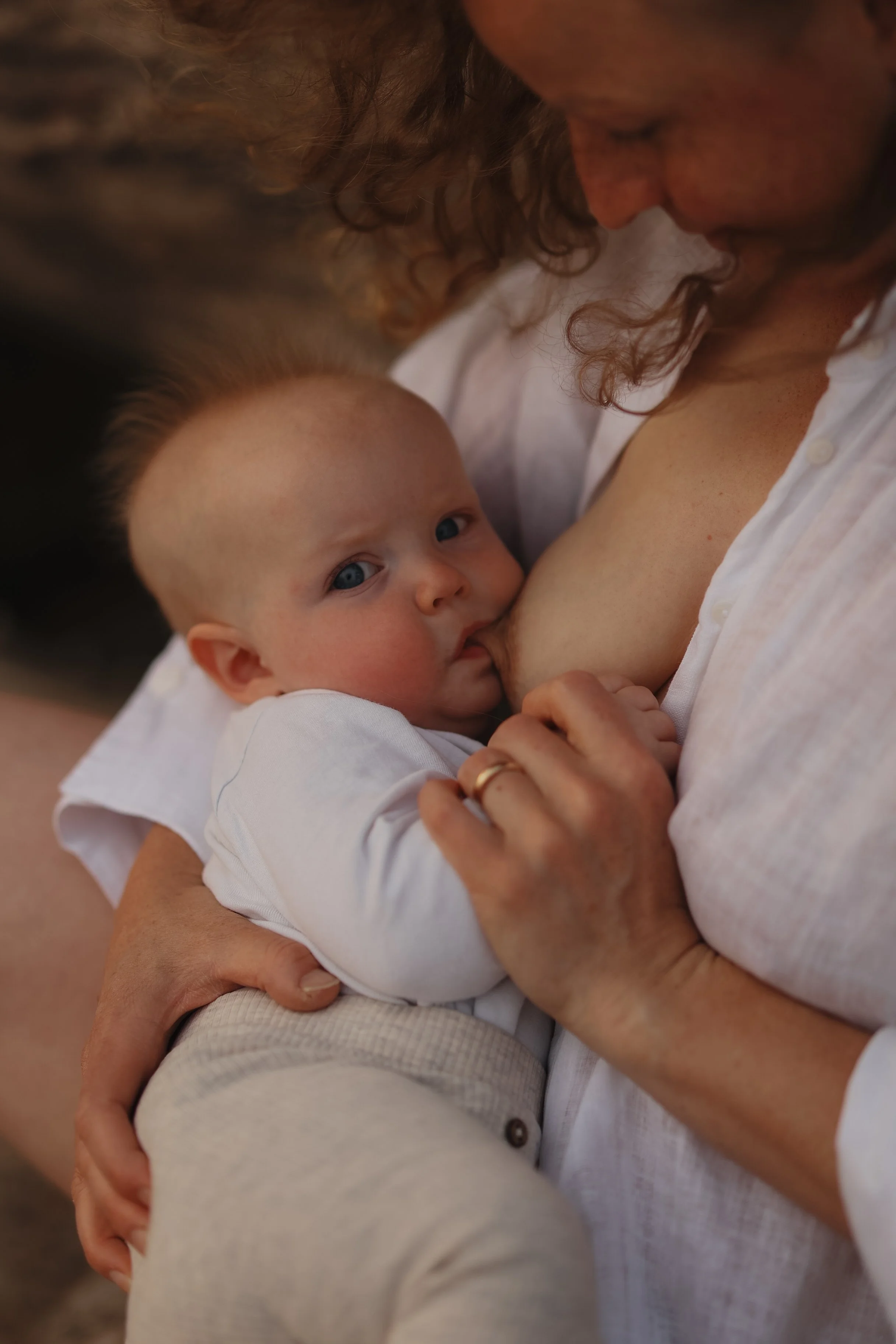 Stillende Mutter mit Kleinkind am Strand
